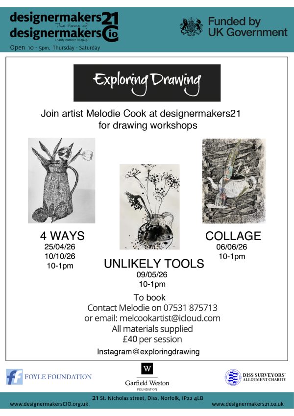Melodie Cook PS is holding 4 drawing workshops this year in an establishment called designermakers21 in Diss, Norfolk.