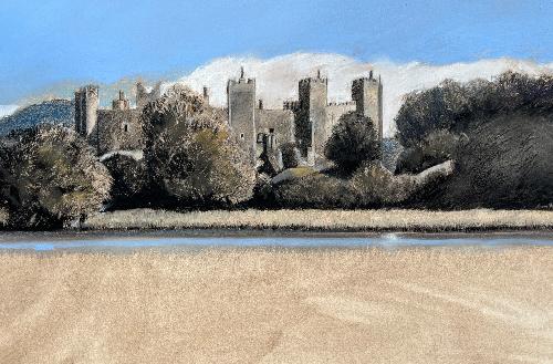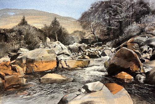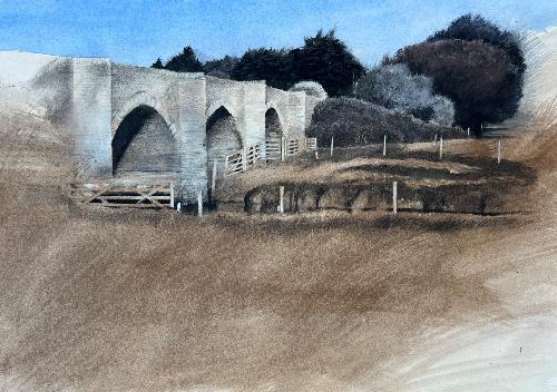 I am most attracted to landscape subjects from rural East Anglia, Wales, Scotland and Southern Ireland which I execute in a figurative way. The scenes I choose often speak to me as containing directional forces of energy which I interpret via relatively large, gestural brush strokes which I lay down first (liquid charcoal and watercolour). Whilst seemingly unnecessary to the onlooker, these marks provide a structural dynamic which feeds my mark making process and wherever preserved, are allowed to counterbalance subsequent layers of finer drawing work in charcoal and pastel. Colour is often minimised in preference to bold, graphic, blacks, blues, browns, light greys and whites. I aim to create drama in my work.