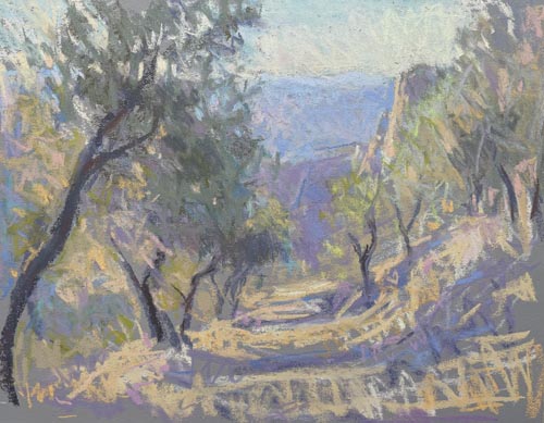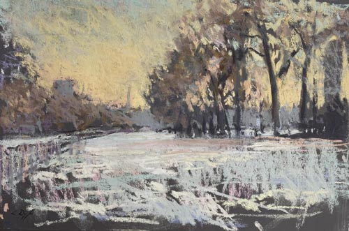 One of the problems of the UK is that the weather is rarely consistent. The same light will not necessarily be repeated the following day so you have to work fast. I think that 2 – 2 1/2 hours is about the maximum before the light changes completely. I do go back to the spot at the same time later but it is often never really the same. I love the spontaneity of pastels and I try very hard not to overwork them. When I get back in the studio I put the work on the wall and I stare at it. I try not to make too many changes because when I do I often find I lose that crucial element that got me started in the first place and the spirit of the piece. So many times have I wrecked pieces by tickling it too much!